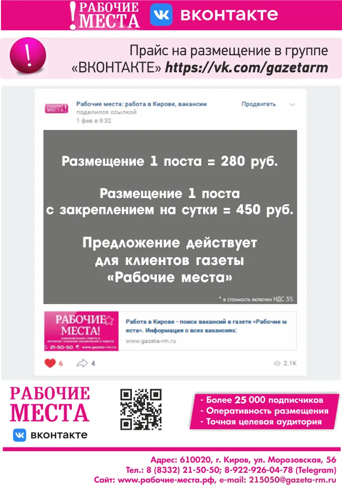 Размещение в рубрике: Работа в ведущих компаниях Кирова +