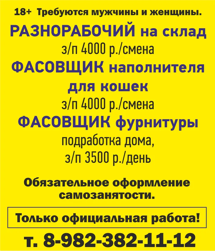 Поместив объявление в газету «Рабочие места», не нужно переживать – шквал звонков всегда! Выбрали для себя единственное издание, так как устраивают принципы работы, оперативность в приеме объявлений и 100% отдача!
